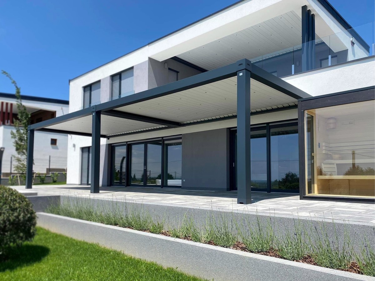 Motoros működtetés, időjárásérzékelők és okosotthon integráció révén a pergola teljesen automatizáltan működhet.