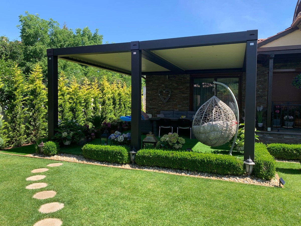 A bioklimatikus pergola a kültéri árnyékolás csúcsa, amely nemcsak védelmet nyújt a nap, a szél és az eső ellen, hanem valódi élettérré alakítja a teraszt vagy a kertet.