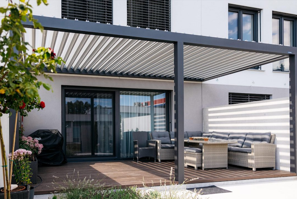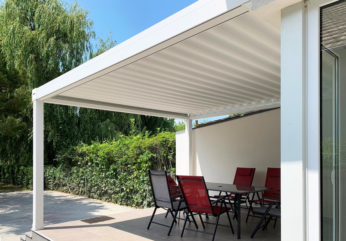 A bioklimatikus pergola segítségével a terasz a nap bármely szakában és bármely évszakban kényelmesen használható.