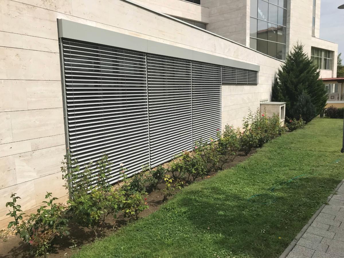 A porfestett alumínium lamellák ellenállnak az UV sugárzásnak, a nedvességnek és a szélnek, így hosszú éveken át működnek.